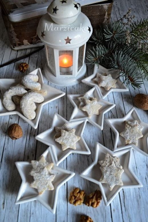 Vychladlý měsíc můžete plnit uvnitř nebo jen potřít. Stačí vám 2 zbylé bílky z vánočního pečení. Ty ušlehejte s cukrem do tuhé hmoty dle chuti. Nebo ušlehejte smetanu. Obojí vám vytvoří sněhový povrch měsíce, na který následně přitiskněte upečené perníčky – můžete i ty, které jste ještě nestačili rozdat stejně jako já…