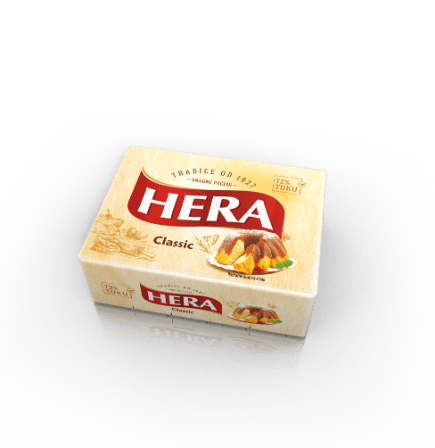 Hera je tu pro vás ve dvou variantách. Klasická Hera je vynikající na jakékoli pečení. Obsahuje 70% tuku. Lze s ní snadno pracovat ihned po vytažení z lednice a zaručuje krásně vláčné těsto.
